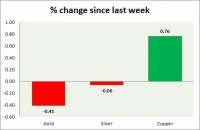 The metal pack is mixed today. Performance this week at a glance in chart table - Gold: Gold gave up gains as risk aversion fades. Todays range $1335-1326 Gold is currently trading at $1328/troy ounce....