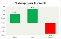 The metal pack is down today. The performance this week at a glance in chart table - Gold: Gold is struggling to gain as it failed to break key resistance around $1350 area and due to lack of risk aversion...