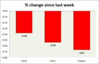 The metal pack is mixed today. The performance this week at a glance in chart table - Gold: Gold is struggling to gain as it failed to break key resistance around $1350 area and as strong dollar weighs. Down this...