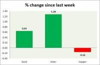 The metal pack is up today. The performance this week at a glance in chart table - Gold: Gold is struggling to gain as it failed to break key resistance around $1350 area and as strong dollar weighs. Up on a...