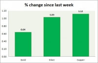 The metal pack is up today. The performance this week at a glance in chart table - Gold: Gold is struggling to gain as it failed to break key resistance around $1350 area and as strong dollar weighs.Higher this...