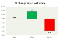 The metal pack is mixed today. Performance this week at a glance in chart table - Gold: Gold is struggling to gain as it failed to break key resistance around $1350 area. Todays range $1326-1341 Gold is...