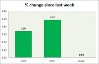 The metal pack is mixed today. Performance this week at a glance in chart table - Gold: Gold is up today on a weaker dollar. So far, failed to break key resistance around $1350 area. Todays range...