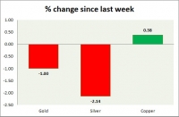 The metal pack is up today. Performance this week at a glance in chart table - Gold: Gold is up today after last weeks big selloff but remains under pressure as it failed to clear key resistance around $1350...