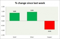The metal pack is mixed today. Performance this week at a glance in chart table - Gold: Gold is higher on geopolitical tensions and a weaker dollar. Todays range $1311-1321 Gold is currently trading at...