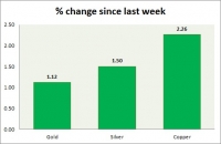 The metal pack is up today. Performance this week at a glance in chart table - Gold: Gold recovered some of the losses on a weaker dollar. Todays range $1269-1264 Gold is currently trading at $1269/troy ounce....