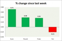 Dollar index trading at 93.54 (-0.16%) Strength meter (today so far) Euro +0.38%, Franc -0.02%, Yen -0.18%, GBP -0.17% Strength meter (since last week) Euro +0.71%, Franc +0.36%, Yen -0.21%, GBP +0.38% EUR/USD...