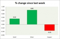 The metal pack is up today. Performance this week at a glance in chart table - Gold: Gold recovered some of the losses on a weaker dollar. Todays range $1252-1260 Gold is currently trading at $1259/troy ounce....