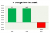 Dollar index trading at 93.55 (-0.15%) Strength meter (today so far) Aussie +0.29%, Kiwi +0.29%, Loonie -0.11% Strength meter (since last week) Aussie +0.29%, Kiwi +0.29%, Loonie -0.11% AUD/USD Trading at...