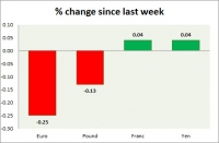 Dollar index trading at 94.02 (-0.08%) Strength meter (today so far) Euro -0.02%, Franc -0.03%, Yen +0.20%, GBP +0.28% Strength meter (since last week) Euro -0.25%, Franc +0.04%, Yen +0.04%, GBP -0.13% EUR/USD...