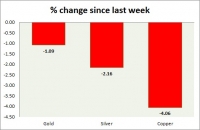The metal pack is up today. Performance this week at a glance in chart table - Gold: Gold is heading lower amid lack of risk aversion. Todays range $1264-1269 Gold is currently trading at $1266/troy ounce....