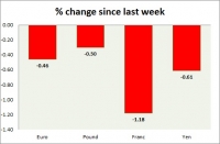 Dollar index trading at 93.33 (+0.27%) Strength meter (today so far) Euro -0.31%, Franc -0.18%, Yen -0.22%, GBP -0.33% Strength meter (since last week) Euro -0.46%, Franc -1.18%, Yen -0.61%, GBP -0.30% EUR/USD...