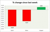 The metal pack is mixed today. Performance this week at a glance in chart table - Gold: Gold is head lower amid lack of risk aversion. Todays range $1270-1282 Gold is currently trading at $1275/troy ounce....