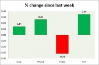 Dollar index trading at 92.6 (-0.22%) Strength meter (today so far) Euro +0.14%, Franc -0.32%, Yen +0.35%, GBP +0.26% Strength meter (since last week) Euro +0.14%, Franc -0.32%, Yen +0.35%, GBP +0.26% EUR/USD...
