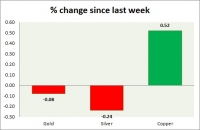 The metal pack is mixed today. Performance this week at a glance in chart table - Gold: Gold is down today despite a weaker dollar. Lack of safe-haven demand as equities rise. Todays range $1272-1278 Gold is...