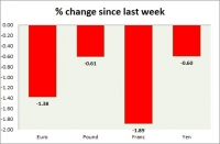 Dollar index trading at 94.96 (+0.34%) Strength meter (today so far) Euro -0.22%, Franc -0.39%, Yen -0.02%, GBP -0.26% Strength meter (since last week) Euro -1.38%, Franc -1.89%, Yen -0.60%, GBP -0.61% EUR/USD...