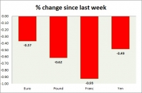 Dollar index trading at 93.54 (+0.29%) Strength meter (today so far) Euro -0.23%, Franc -0.24%, Yen +0.04%, GBP -0.50% Strength meter (since last week) Euro -0.37%, Franc -0.93%, Yen -0.49%, GBP -0.62% EUR/USD...