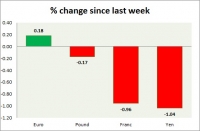 Dollar index trading at 91.99 (-0.20%) Strength meter (today so far) Euro +0.15%, Franc +0.16%, Yen +0.39%, GBP -0.08% Strength meter (since last week) Euro +0.18%, Franc -0.96%, Yen -1.04%, GBP -0.17% EUR/USD...