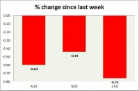 Dollar index trading at 92.34 (-0.07%) Strength meter (today so far) Aussie +0.20%, Kiwi -0.44%, Loonie -0.13% Strength meter (since last week) Aussie -0.60%, Kiwi -0.44%, Loonie -0.76% AUD/USD Trading at...