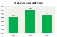 The metal pack is up today. Performance this week at a glance in chart table - Gold: Gold is consolidating on profit bookings. Down today despite weaker jobs report. Todays range $1316-1329 In the short-term...