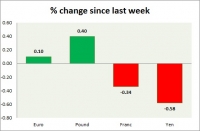 Dollar index trading at 92.54 (+0.23%) Strength meter (today so far) Euro -0.33%, Franc -0.19%, Yen -0.19%, GBP +0.01% Strength meter (since last week) Euro +0.10%, Franc -0.58%, Yen -0.34%, GBP +0.40% EUR/USD...