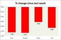Dollar index trading at 93.87 (+0.44%) Strength meter (today so far) Euro -0.66%, Franc -0.23%, Yen -0.12%, GBP -0.16% Strength meter (since last week) Euro -1.05%, Franc -0.62%, Yen -0.86%, GBP -1.07% EUR/USD...