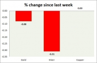 The metal pack is down today. Performance this week at a glance in chart table - Gold: Gold is declining sharply after a failure to break key resistance line. Todays range $1260-1255 In the short-term price is...