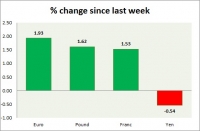 Dollar index trading at 95.83 (-0.22%) Strength meter (today so far) Euro -0.22%, Franc -0.22%, Yen +0.04%, GBP -0.23% Strength meter (since last week) Euro +1.93%, Franc +1.53%, Yen -0.54%, GBP +1.62% EUR/USD...