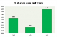 Dollar index trading at 97.34 (-0.13%) Strength meter (today so far) Aussie +0.33%, Kiwi +0.49%, Loonie +0.22% Strength meter (since last week) Aussie +1.10%, Kiwi +0.44%, Loonie +1.78% AUD/USD Trading at...