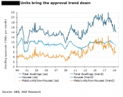 Australias building approvals were down 9.7 percent over July, driven by an 18.4 percent fall in units and a smaller 3.3 percent fall in houses, marking the third lowest annual result in both the last year and the last...