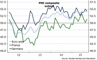 Germanys PMIs fell more than expected, pulled down particularly by lower manufacturing confidence, but the levels are still high indicating a growth rate around 0.4 % in the third quarter of 2015."Domestic demand appear to...