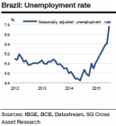 The GDP contraction this year has resulted in a sharp deterioration in Brazils labour market as the unemployment rate rose to 7.5% in July from 4.3% in December 2014 (to 7.3% from 5.1% on a seasonally-adjusted basis during...