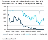 The July FOMC statement upgraded the assessment of the labor market, noting that "some" further improvement is needed before beginning the hiking cycle. Separately, the Fed staffs expected path of the hiking cycle looks...