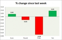 Dollar index trading at 96.39 (+0.03%) Strength meter (today so far) Euro +0.04%, Franc -0.28%, Yen +0.09%, GBP -0.05% Strength meter (since last week) Euro +0.04%, Franc -0.28%, Yen +0.09%, GBP -0.05% EUR/USD...