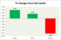 The metal pack is down today. The performance this week at a glance in the chart table - Gold: Gold is up sharply this week over weaker USD. In addition to that, remains upbeat on risk aversion. But down today,...