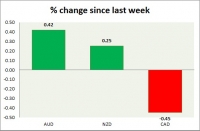Dollar index trading at 97 (-0.00%) Strength meter (today so far) Aussie +0.20%, Kiwi +0.17%, Loonie -0.14% Strength meter (since last week) Aussie +0.42%, Kiwi +0.25%, Loonie -0.45% AUD/USD Trading at...