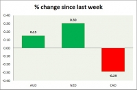 Dollar index trading at 97.15 (-0.09%) Strength meter (today so far) Aussie +0.24%, Kiwi +0.32%, Loonie -0.13% Strength meter (since last week) Aussie +0.15%, Kiwi +0.30%, Loonie -0.29% AUD/USD Trading at...