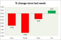 Dollar index trading at 96.28 (-0.16%) Strength meter (today so far) Euro +0.25%, Franc -0.17%, Yen -0.28%, GBP +0.10% Strength meter (since last week) Euro -0.76%, Franc -0.35%, Yen +0.17%, GBP -1.20% EUR/USD...