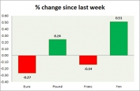 Dollar index trading at 95.79 (+0.04%) Strength meter (today so far) Euro -0.09%, Franc +0.01%, Yen +0.03%, GBP +0.33% Strength meter (since last week) Euro -0.27%, Franc -0.29%, Yen +0.39%, GBP -0.45% EUR/USD...