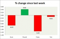 Dollar index trading at 95.69 (-0.08%) Strength meter (today so far) Euro +0.01%, Franc -0.04%, Yen +0.09%, GBP +0.39% Strength meter (since last week) Euro -0.72%, Franc -1.13%, Yen -0.11%, GBP +0.42% EUR/USD...