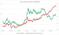 The chart above shows, how the relationship between USD/DKK and 2-year yield spread has unfolded since 2012. Brief Background: It can be seen that the pair and the yield spread between 2-year treasury and 2-year...