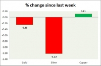 The metal pack is mixed today. The performance this week at a glance in chart table - Gold: Gold remains under pressure amid a stronger dollar. Todays range $1209-1198 Gold is currently trading at $1202/troy...