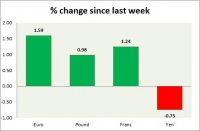Dollar index trading at 95.3 (-0.38%) Strength meter (today so far) Euro +0.42%, Franc +0.24%, Yen -0.06%, GBP +0.26% Strength meter (since last week) Euro +1.59%, Franc +1.24%, Yen -0.75%, GBP +0.98% EUR/USD...