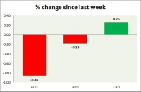 Dollar index trading at 96.85 (+0.20%) Strength meter (today so far) Aussie -0.11%, Kiwi -0.19%, Loonie -0.31% Strength meter (since last week) Aussie -0.86%, Kiwi -0.18%, Loonie +0.25% AUD/USD Trading at...