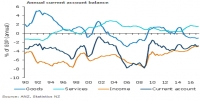 New Zealands current account deficit narrowed slightly more than expected in Q2; helped by historical revisions, the annual deficit fell to 2.8 percent of GDP. The seasonally adjusted current account deficit also...