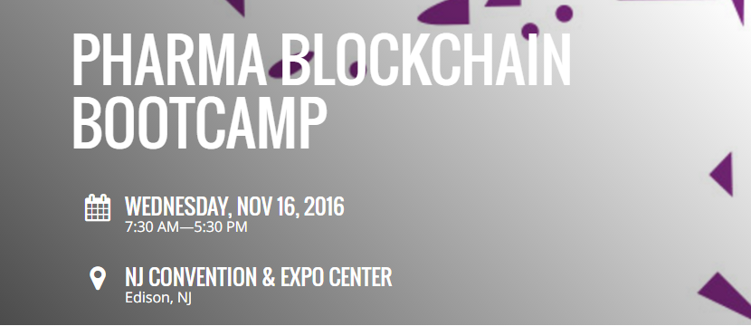 The Pharma Blockchain Bootcamp will be held on November 16, 2016, in Edison, New Jersey, and will see speaker line-up of blockchain leaders from leading health innovators including Michael Dillhyon of YouBase, Leonard Kish of Self Care Catalysts, Josh Robinson of BitBoss, and Carlos Sanchez of iSolve, among others.