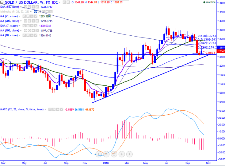 - The support is at $1250 and any violation below will drag the gold till $1226 (161.8% retracement of $1241 and 1264.93)/$1210.