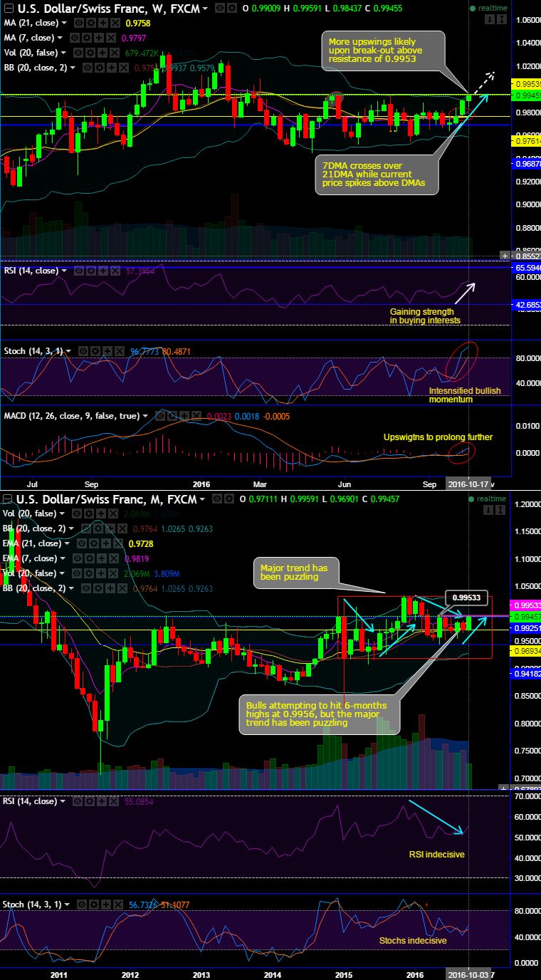 On a broader perspective, bulls attempting to hit 6-months highs at 0.9956, but the major trend has been puzzling.