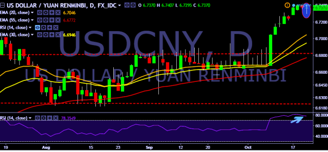 We prefer to take long position in USD/CNY only above 6.7410, stop loss at 6.7180 and target of 6.7583/6.7831/6.8158.