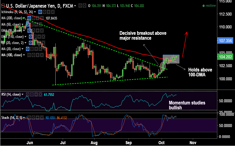 - Major support levels - 103.94 (5-DMA), 103.23 (100-DMA), 103, 102.85 (Oct 7 low)